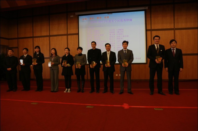 会议总结回顾了2012年我区法律服务业工作,并对今年我区法律服务业工作进行了部署。对2009-2012年度区优秀律师、优秀公证员,2011-2012年度法律援助先进单位和个人进行了表彰。律工委代表、金杜所、海华永泰所、君悦所做了交流发言。2012年,在区委区政府的坚强领导下,全区法律服务工作者紧紧围绕创新驱动、转型发展主线,为推进全区经济社会发展、社会和谐稳定和管理创新作出了应有的贡献。市司法局副局长刘忠定表示,长宁区法律服务业在全市占有重要地位,并对长宁法律服务业的发挥表示了高度肯定。