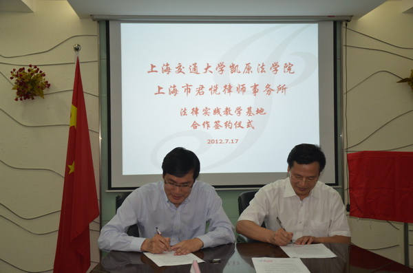 2012年7月17日,本所与上海交通大学正式签约,建立“法律实验教学训练基地”。今后,上海交大将根据专业方向持续为本所挑选输送优秀学生,本所将为学生提供相应实习岗位及指导律师,并与上海交大合作,开展法律实验教学,首期实验教学将从破产法专业开始。上海交通大学凯原法学院副院长、经济法研究所所长、博士生导师王先林教授,上海交通大学凯原法学院民商法研究所所长、博士生导师、著名破产法专家韩长印教授,上海交通大学法律实验教学训练中心执行主任刘永沛博士作为上海交大校方代表参与了签约仪式。