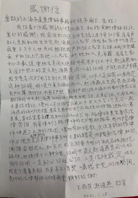近日,上海市远东律师事务所收到了市民王女士与赵女士特意送来的感谢信,感谢杨寅彬律师在此前提供公益法律服务时的专业和热心。