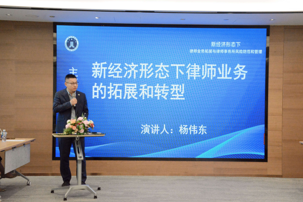 上海律协律所规范与发展委员会副主任、浦东律工委主任杨伟东律师围绕“新经济形态下律师业务的拓展和转型”展开分享,提出律师需不断提升专业素养,拓展业务领域,同时律师事务所也要优化管理机制,适应新经济形态下的发展需求,实现可持续发展。