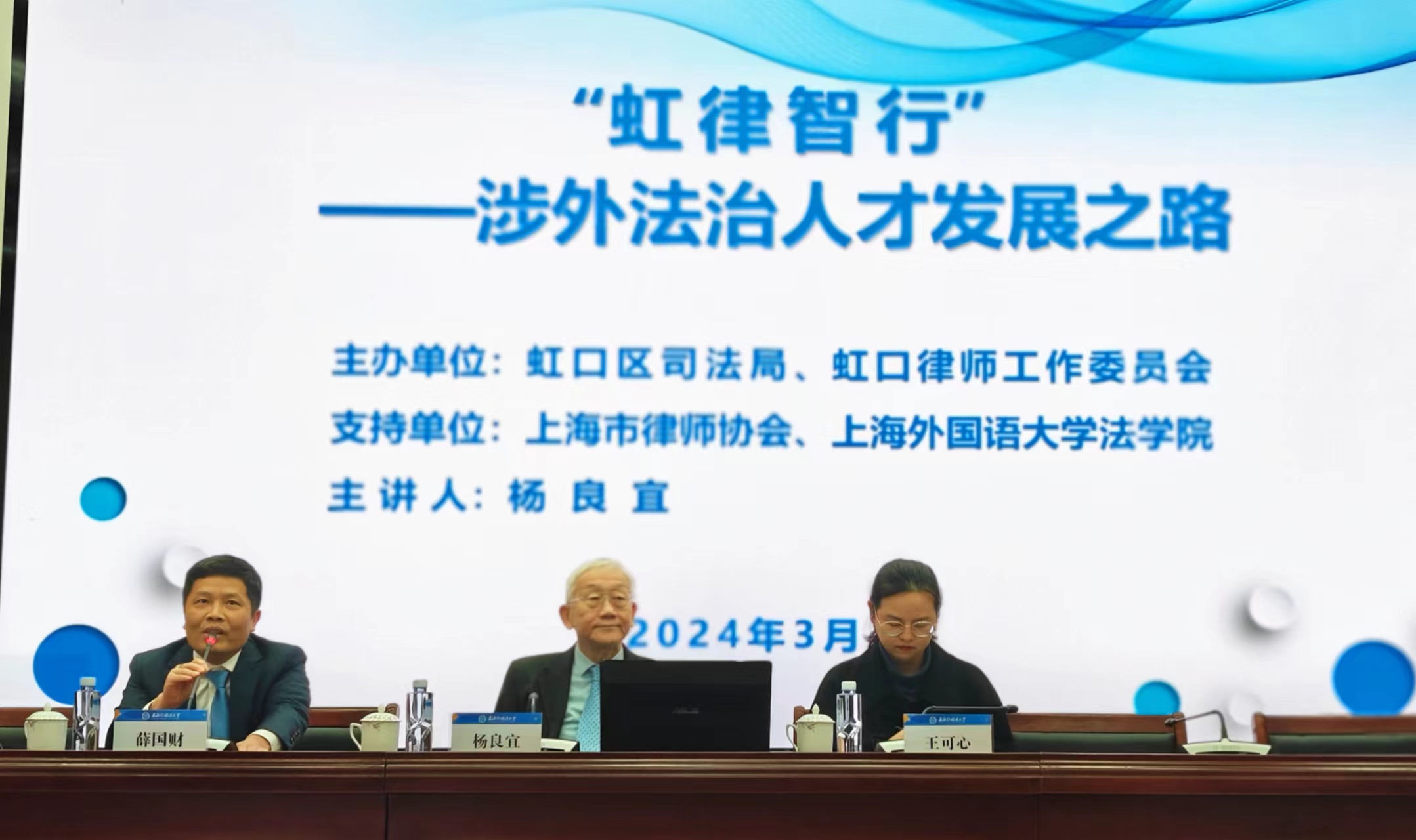 立足“虹口北外滩 都市新标杆”定位,伴随北外滩国际法律服务港全面起势,涉外法治人才需求热在虹口持续升温。虹口区司法局因势利导,聚力打造产学研一体化的涉外法治人才培养模式,携手一众学院高校,对接各大律师事务所和仲裁机构,引入市律协专业委员会和区律工委“专家智库”,依托本区“虹律智行”律师业务培训品牌,让理论研究和实务探索在同台“碰撞融合”,让学者教授、从业律师和莘莘学子于同堂切磋交流。近日,“选择北外滩”系列活动之“虹律智行”论坛更是迎来了重量级授课嘉宾——杨良宜教授。