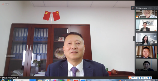 吕忆农局长在讲话中说,因为疫情,“实践基地”项目受到了影响、遇到了困难,但我们秉持着在涉外法律服务领域拓宽交流渠道、为“一带一路”提供优质法律服务的初心和决心,通过与各方积极协调和不懈努力,以线上“云交流”的形式,使“实践基地”项目得以成功延续。他希望:一是交流有收获。期待大家在今天的研讨中畅所欲言,碰撞出思想的火花;二是交流有延伸。希望大家能够珍惜此次机会,通过线上的交流相识,建立友谊,真正实现设立“一带一路”实践基地项目的初衷——搭建国际法律人才交融共进的桥梁和平台。他代表静安区司法局感谢华东政法大学暨国际交流处和国际教育学院的大力支持,希望未来能达成更深层的联系与合作。