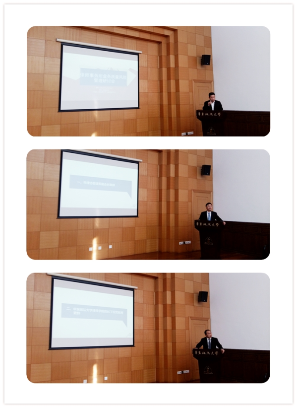 会议首先由市律协副会长管建军和华政律师学院院长丁绍宽致辞。随后,北京炜衡(上海)律师事务所的顾靖律师做了“事务所业务质量风险管理的若干控制点”、北京观韬中茂(上海)律师事务所的田波律师做了“青年律师合伙人如何参与律师事务所的管理”、北京市金杜律师事务所上海分所的陈青东律师做了“事务所知识管理对业务质量管理的重要作用”、上海市金茂律师事务所毛惠刚律师做了“事务所投标管理风险控制”、国浩律师(上海)事务所黄宁宁律师做了“事务所证券业务中法律意见书风险控制”、北京大成(上海)律师事务所吴晨尧律师做了“事务所业务质量风险控制中事务所与团队的分工与管理”、上海市锦天城律师事务所裘索律师做了“事务所如何避免间接的利益冲突”的主题发言。