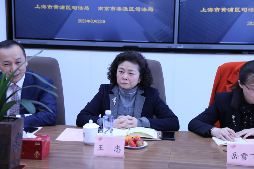 黄浦区司法局党委副书记、区律师行业党委书记王忠对南京市秦淮区司法局、南京市律协秦淮分会一行人的到来表示欢迎,并指出黄浦区和秦淮区在区情区貌以及面临的问题压力等方面具有共通之处,希望两区加强交流合作,共同促进法律服务业的发展。