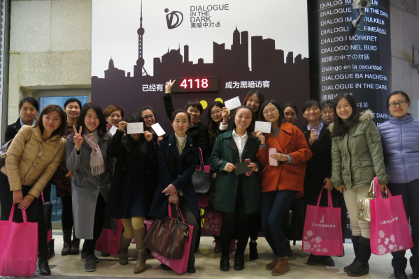 讲座前后,部分参加培训的青年女律师还分批前往附近的“黑暗中对话”上海体验馆,参加了“与黑暗对话”拓展体验活动。体验活动的目的是将参与者置身于完全黑暗的环境中,迫使参与者失去视觉的依赖,以开启其它的感官能力,借此引发参与者对“能力”重新定义。