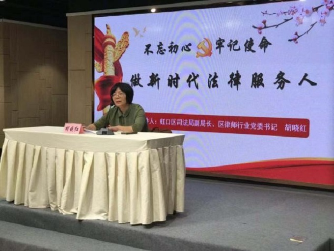 主题活动第一项议程,由虹口区青年律师联谊会会长、上海如闻律师事务所主任张晔主持,特邀虹口区司法局副局长、区律师行业党委书记胡晓红以“不忘初心,牢记使命,做新时代法律服务人”为主题为大家上党课。胡晓红同志从什么是共产党人的初心使命?为何要不忘初心,牢记使命?如何不忘初心,牢记使命?新时代中国律师、司法鉴定人应具有哪些职业素养?四个方面为切入点,要求新时代的法律服务人员提高政治站位、筑牢政治保障,将守好党的初心、担好时代使命与履行法律服务的职责统一起来,不断强化自身使命,提升自身素质,在实现伟大梦想的过程中做新时代的建设者。