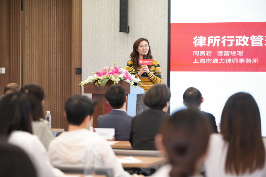 在主题分享环节,上海市通力律师事务所运营经理周贤君以“律所行政管理的精进之路”为题,结合自身近25年的实务经验,分享了行政管理中的三大挑战:一是应对各类问题所需的知识储备,二是面对多方利益冲突时的思维与心态转变,三是打造难以被复制的执行能力。她通过“找规律”游戏引出“可复制性”在管理中的重要性,并推荐了《思辨与立场》《非暴力沟通》等多本实用书籍,鼓励行政同仁坚持学习、持续精进。