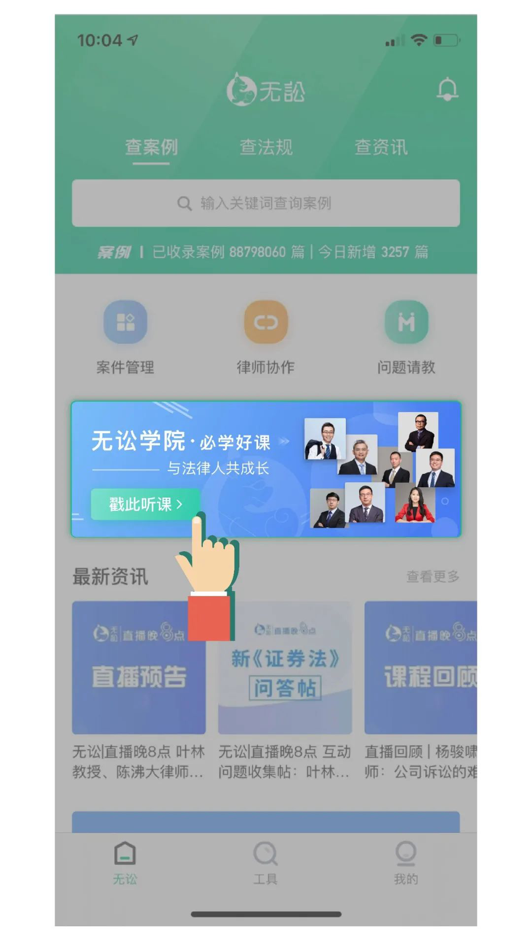 3)点击App首页“无讼学院”入口图