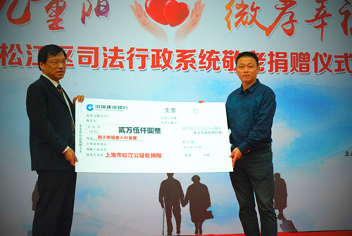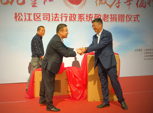 10月27日,松江区司法局、鸿发国际松江律师工作委员会、松江公证处在松江区叶榭镇幸福老人村举行了重阳节敬老活动,区司法局局长莫桂兴、副局长陈炳泉、局相关业务部门负责人、松江公证处主任、松江律工委主任、委员及松江区全体老律师参加活动。
