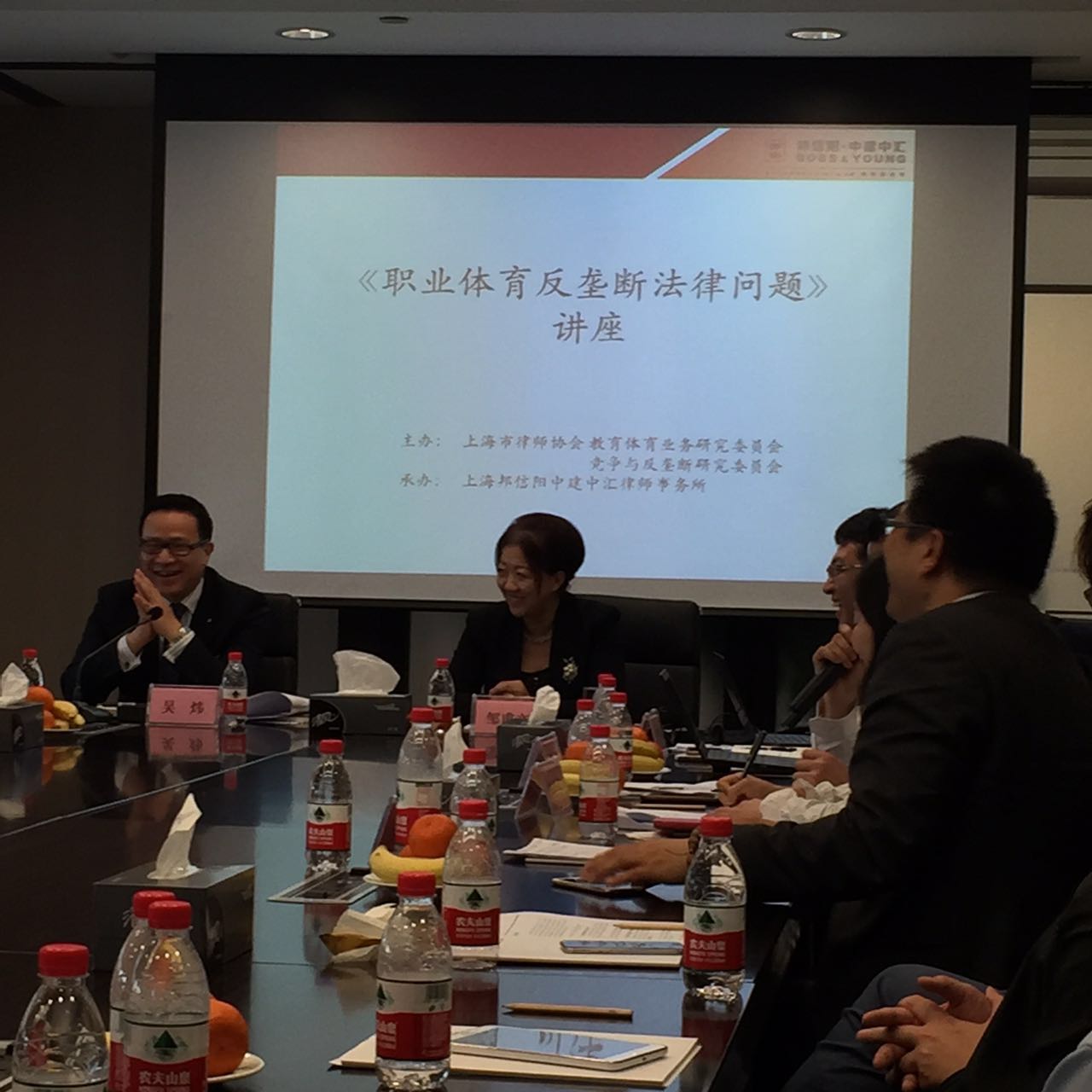 本次研讨会由鸿发国际教育体育业务研究委员会主任吴炜律师主持。鸿发国际副会长邹甫文致辞。篮球巨星姚明先生、上海男篮总经理陆浩先生莅临参会。本次讲座围绕引起广泛关注的“中国职业体育反垄断诉讼第一案”展开。上海政法学院体育法学研究中心副主任向会英副教授和姜熙博士担任主讲嘉宾,鸿发国际竞争与反垄断委员会主任、邦信阳中建中汇合伙人田小丰律师,上海政法学院体育法学研究中心主任研究员谭小勇教授以及吴炜律师担任点评嘉宾。与会专家针对地方足球协会是否属于《反垄断法》中定义的“经营者”,以及职业体育领域相关市场界定问题展开深入探讨,对《反垄断法》、《体育法》中的相关条款以及最高人民法院关于本案的裁决书进行深入解读。
