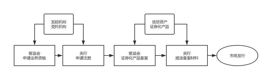发行机构与受托机构须先后在银监会、央行获得证券化业务资格并申请注册,方可从事信贷资产证券化相关活动。