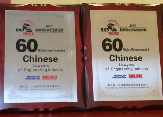 11月,美国《工程新闻纪录》(ENR)与中国《建筑时报》共同发布的“最值得推荐的60位中国工程法律专业律师”正式揭晓,上海建领城达律师事务所的周吉高、俞光洪两位律师成功入选该榜单。