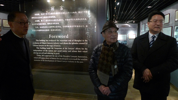 2012年2月29日,金茂凯德律师事务所党支部组织参观上海律师公会旧址陈列馆。中共上海市黄浦区司法局党委书记翟世祺等区局领导与著名法学家,原上海市人民政府参事室主任,九三学社上海副主委,金茂凯德律师事务所主任李昌道教授等一同参观。看着精心布置的展品和熟悉的律师先贤,李昌道教授连连称赞上海律师公会旧址陈列馆为弘扬中华律师文化提供了很好的教材,是激励青年律师成长成才的重要基地。