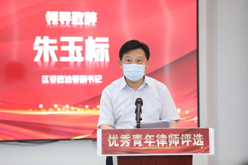 朱玉标向本次活动致辞,他肯定了松江律师在推动松江法治建设过程中的成绩,同时提出三点希望:一要永葆“对党忠诚”的政治本色,进一步增强听党话跟党走的坚定性、讲政治顾大局的自觉性,努力做党和人民满意的好律师;二要提升“服务为民”的担当亮色,在成就自我的同时,积极参与公益法律服务,更好地书写奉献之歌,绽放青春光芒;三要涵养“诚信执业”的职业底色,要将诚信执业作为律师职业的生命线,严格遵守法律法规和执业纪律,为律师行业注入蓬勃朝气、昂扬锐气、浩然正气。同时,他要求区司法局要进一步健全完善青年律师培养机制,进一步拓宽青年律师实践锻炼途径,进一步完善青年律师成长激励机制。