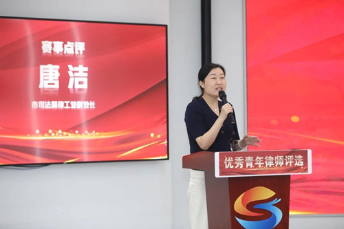 唐洁对20名获奖者表示祝贺,用“扎根深、执业领域广、准备充分、表现精彩”对参赛律师的演讲进行了点评,对青年律师提出了“胸怀大局、热爱行业、专业精湛”的具体要求,并勉励青年律师“不着急、不害怕、‘不要脸’”,注重沉淀和积累、坚定执业初心,不断历练成长。