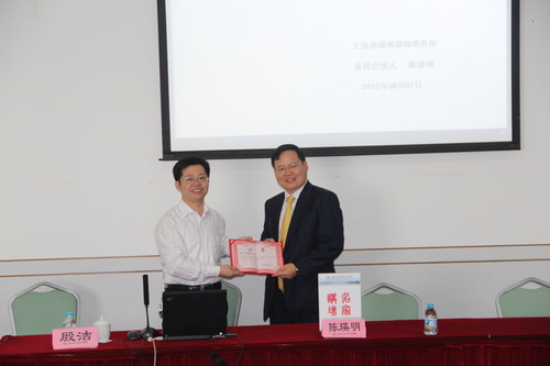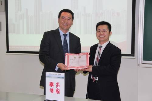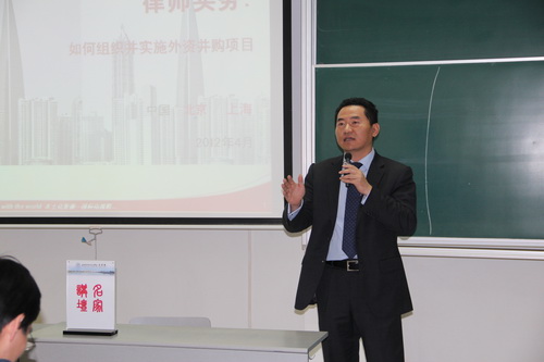 2012年4月26日上午,为了丰富同学们在外资并购领域的实践知识和向同学们提供与成功律师经验交流的机会,法学院在教学楼D104举办了名家讲坛第六讲暨鸿发国际——律师进校园实务讲座第二讲“如何组织并实施外资并购项目”。通力律师事务所合伙人及顾问俞卫锋律师为主讲人。法学院副院长乔宝杰教授、殷洁教授出席,并向俞律师颁发了“名家讲坛”纪念证书。