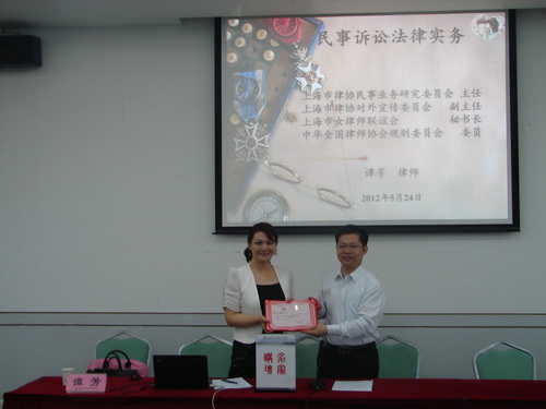 5月24日晚在信息楼530报告厅,上海律协民事业务研究委员会主任、上海市律协对外宣传委员会副主任、上海市女律师联谊会秘书长、中华全国律师协会规则委员会委员、上海嘉华律师事务所合伙人谭芳律师做客法学院“名家讲坛”,做了题为“民事诉讼法律实务”的精彩报告。法学院挂职副院长殷洁教授主持。