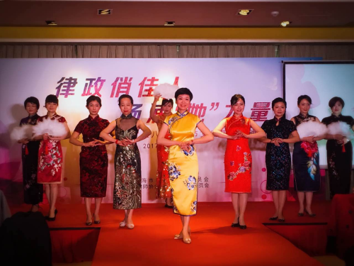 活动伊始,周志宇局长和厉明主任就活动致辞,杨浦区女律师工作小组自成立以来,一直本着专业引领、公益奉献的初衷,获得了杨浦区各界团体的广泛认可和支持。越来越多有责任、有担当、有爱心的杨浦女律师加入到志愿者队伍中,杨浦区“睦邻家园女律师志愿团”正式成立。区司法局和律工委领导也借由本次三八妇女节活动,首先向各位奋斗在一线的女律师志愿者致以鼓励,为各位“睦邻家园”的女律师颁发聘书。随后的活动中,女律师旗袍队进行了精彩的走秀表演;陆静局长诗朗诵《林徽因——别丢掉》;律公科方文静古筝演奏《渔舟晚唱》;女声独唱《鼓浪屿之波》以及京剧表演《沙家浜——军民鱼水情》。