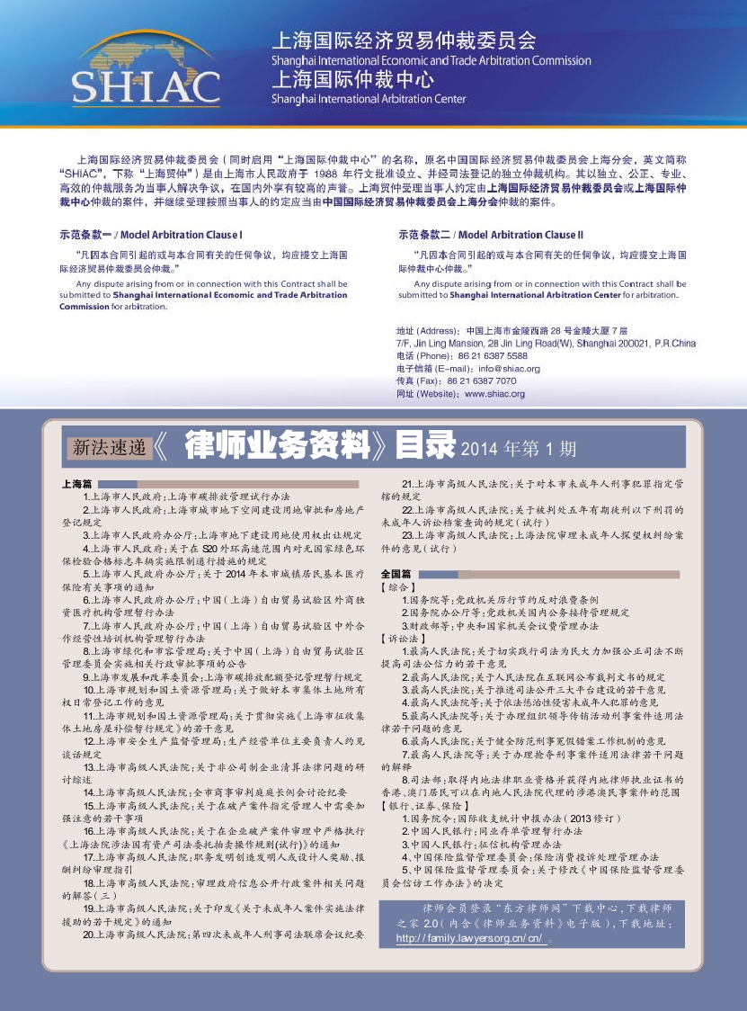 《律师业务资料》目录2014年第1期