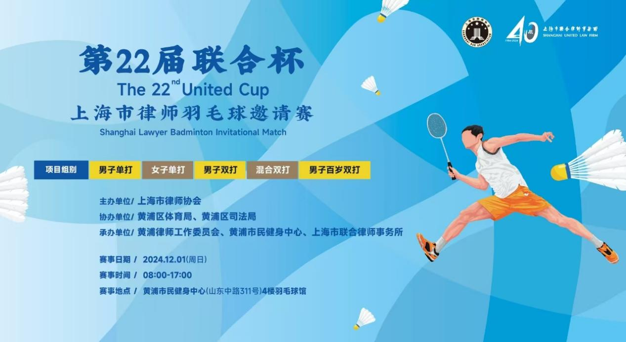 2024年第二十二届“联合杯”上海市羽毛球邀请赛将于12月1日(周日)在黄浦市民健身中心举办,为确保赛事顺利进行,现将有关事项通知如下: