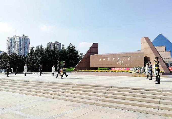 在“丹心碧血为人民”纪念碑前,全体党员干部进行了庄重的祭扫仪式,向革命烈士敬献花篮并集体三鞠躬,表达对先烈的崇敬和缅怀。