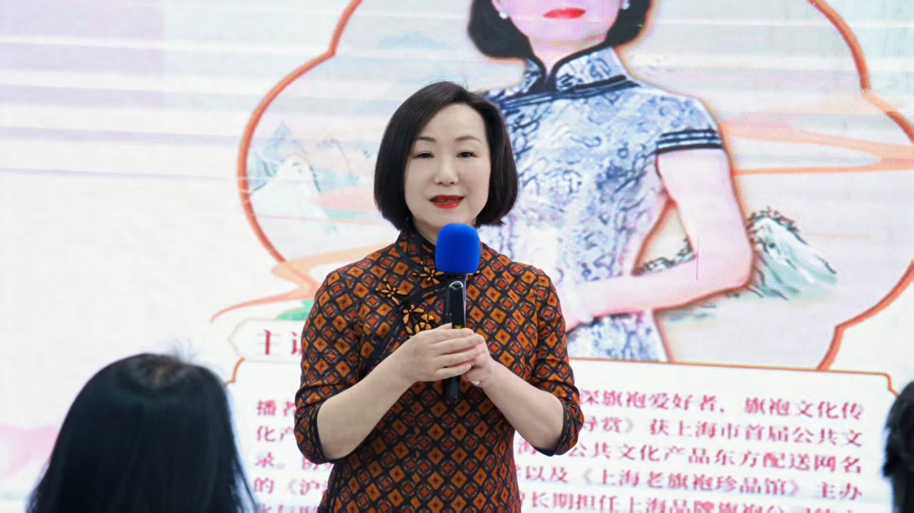 随后,海派红颜旗袍会创始人、旗袍文化的传播使者毛茹蔚老师带来了一场别开生面的“旗袍——穿越时空的优雅”专题分享。她以生动的语言、丰富的史料,讲述了旗袍的诞生、发展及演变过程,揭示了旗袍款式细节变化背后的社会意义和历史原因。通过她的分享,大家深刻感受到了旗袍所承载的女性意识觉醒和自强自立的精神内涵。