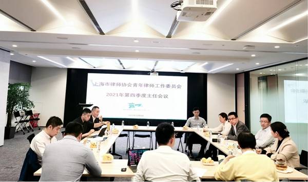 11月5日下午,上海律协青年律师工作委员会(以下简称“青工委”)2021年度第四次主任工作会议在北京大成(上海)律师事务所召开。上海律协副会长徐培龙、副秘书长潘瑜、青工委主任陆胤、副主任周郁生、王栋、张玲、潘雄、吴颖、程苏、王思维以及秘书处公共关系部相关人员参加了会议。会议由青工委副主任周郁生主持。