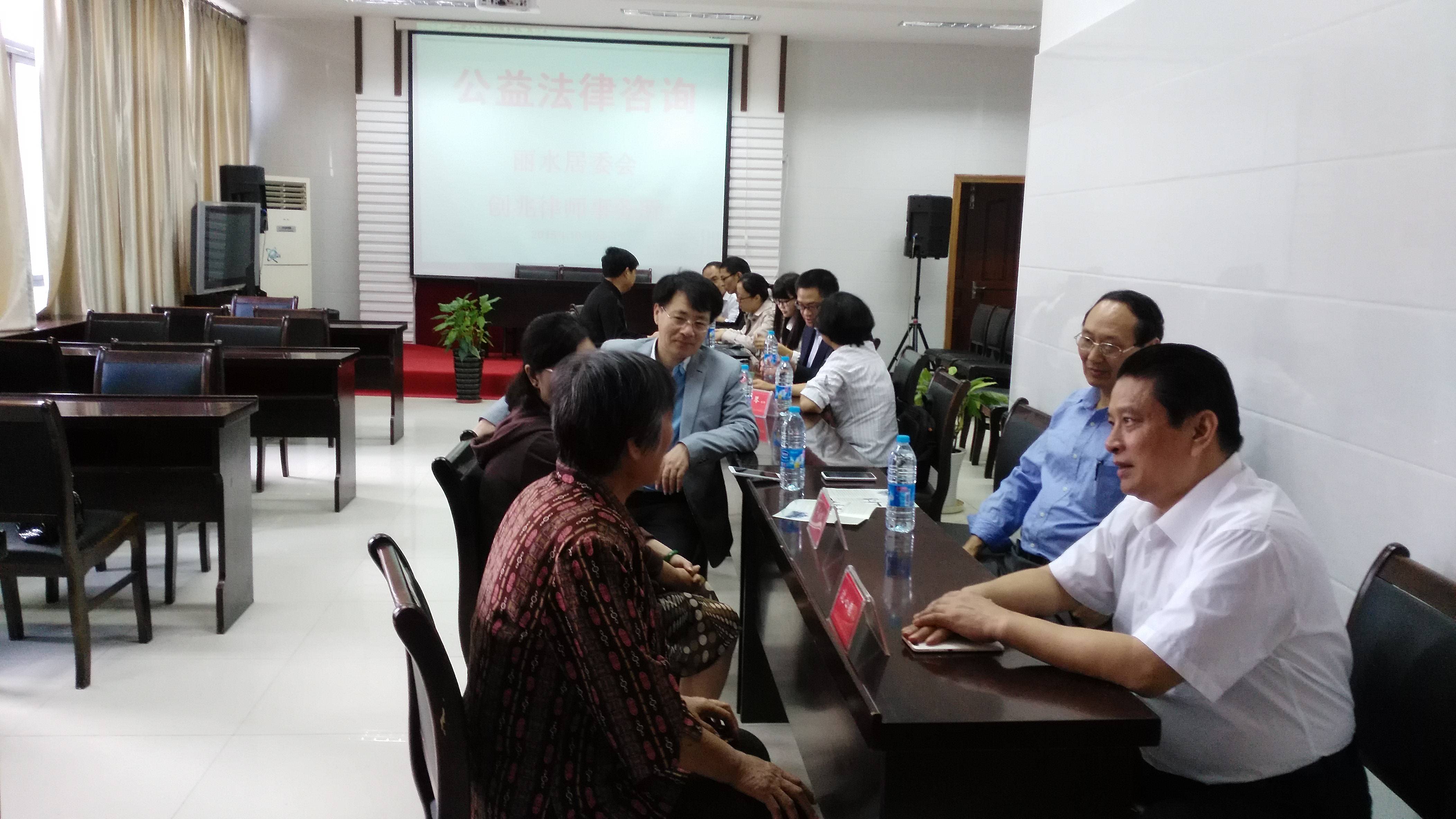 10月24日上午,松江创兆律师事务所党支部组织党员律师到结对共建的泗泾镇丽水居委会开展公益咨询服务。区司法局党委委员、律师党委书记、副局长陈炳泉和区局律公科科长在上午九点赶到活动现场,与党员律师一起,免费为群众解答法律问题。