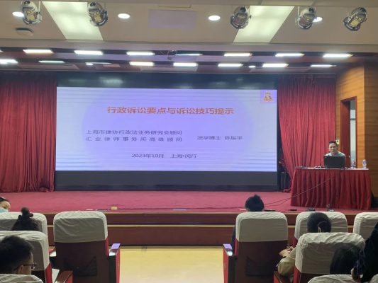 培训特邀上海律协行政法专业委员会顾问陈振宇博士授课,陈振宇博士结合自己在市高级人民法院行政审判庭丰富的实务经验,围绕“行政诉讼要点与诉讼技巧提示”这一主题,从“行政诉讼制度概要”“诉讼技巧提示”等方面出发,就立案、当事人确认、庭审等关键环节进行了专题授课。课堂上,参训学员反响热烈,积极就自己工作中遇到的难点问题和专家交流沟通,取得了良好的培训效果。