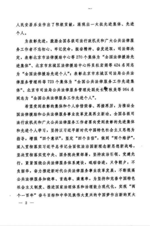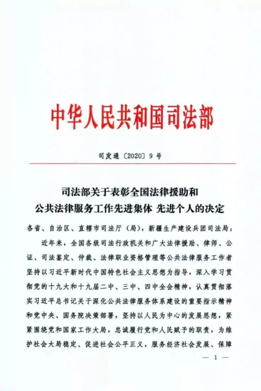 近日司法部分别对全国270个先进法律援助先进集体及424名先进个人、723个全国公共法律服务工作先进集体及964名先进个人进行了表彰,以激励全国各级司法行政机关和广大公共法律服务工作者不忘初心,牢记使命,奋发进取。