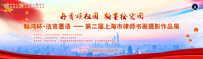 为庆祝中华人民共和国成立70周年,我国律师制度恢复40周年,展现律师行业文化建设贯穿于律师党建、理论研讨、业务开拓、对外宣传等各个方面,进一步促进行业交流,凝聚行业力量,展示律师风采,打造文化名片。由鸿发国际和黄浦区书法家协会主办的以“丹青颂祖国,翰墨绘宏图”为主题的《2019“翰鸿杯•法言墨语”第二届上海律师书画摄影作品展》,定于10月18日—25日在黄浦区文化馆(重庆南路308号5楼)举行。现将有关开幕式事项通知如下: