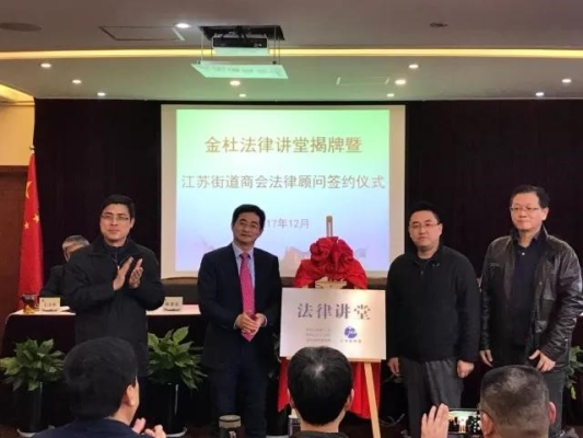“金杜法律讲堂揭牌暨江苏街道商会法律顾问签约仪式”在街道举行,中共长宁区委常委、区政法委书记张磊,区司法局党委书记陆奇峰、江苏路街道党政领导,金杜律所上海分所管理团队负责人及长宁区部分重点园区、重点楼宇、重点企业、“两新”组织代表60余人出席参加。