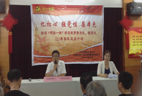 活动中,佳木斯路315弄党总支童玛丽书记传达中央、市委、区委推进“两学一做”常态化制度化的工作要求,并对社区党建工作进行部署,号召全体党员积极投入社区“双创”,发挥先锋模范作用。