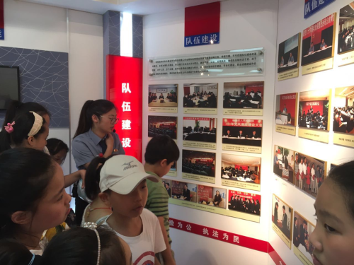下午,汤律师、尤律师和司法所工作人员组织青少年前往杨浦区人民检察院进行参观,在讲解老师的带领下,参观了审讯室、侦查指挥室,讲解员为同学们介绍了审理室设置、审理过程和审理技术手段,让同学们体会到了案件审理细致严谨和检察官的勤勉敬业。之后,大家参观了检察院的院史陈列室和文化长廊,陈列室共分为创建重建、履行职能、队伍建设、机构沿革、改革创新、光荣业绩等六个部分,陈列室中一幅幅珍贵的照片和文字,真实描述了检察院五十余载的风雨征程,让大家重温那段艰辛与成就的历史。