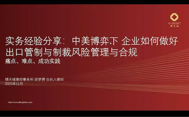 面对当前全球地缘政治博弈加剧、中美出口管制与制裁体系持续升级的复杂形势,她聚焦企业跨境经营中最核心的合规痛点,深入拆解中美双重合规框架下,企业在出口管制与制裁风险管理中可能遇到的潜在风险、常见误区。从交易前期的合规审查、流程规范,到中期的风险预警、文件留存,再到后期执法调查的应对技巧,她用通俗的解读和具体的案例指引,清晰告知企业该如何搭建合规体系、规避违规风险,为企业提供了兼具专业性与可操作性的合规解决方案。