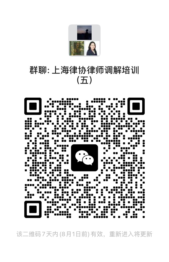 扫描下方二维码成功入群即为线上报名成功,已经参加调解培训(一)(二)(三)及(四)群的会员无需再次入群。讲座正式开始前,微信群会发布参加讲座的腾讯会议会议号,按照腾讯会议的操作流程即可参与讲座。