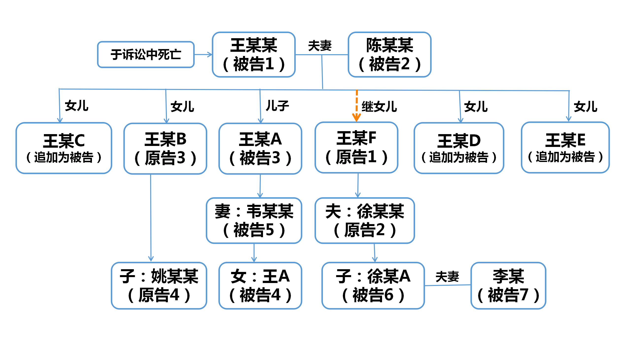 因王某于诉讼过程中报死亡,法院依法追加其继承人王某C、王某D、王某E作为被告。审理中,王某F、王某B明确表示放弃继承,王某C、王某D、王某E明确表示三人享有的继承份额赠与王某A,王某A同意接受赠与。王某F、徐某、王某B、姚某明确仅主张四人在本次征收中享有的份额。另,陈某、王某A、韦某、王A表示同意王某F、徐某分得50万元,王某B、姚某分得50万元。