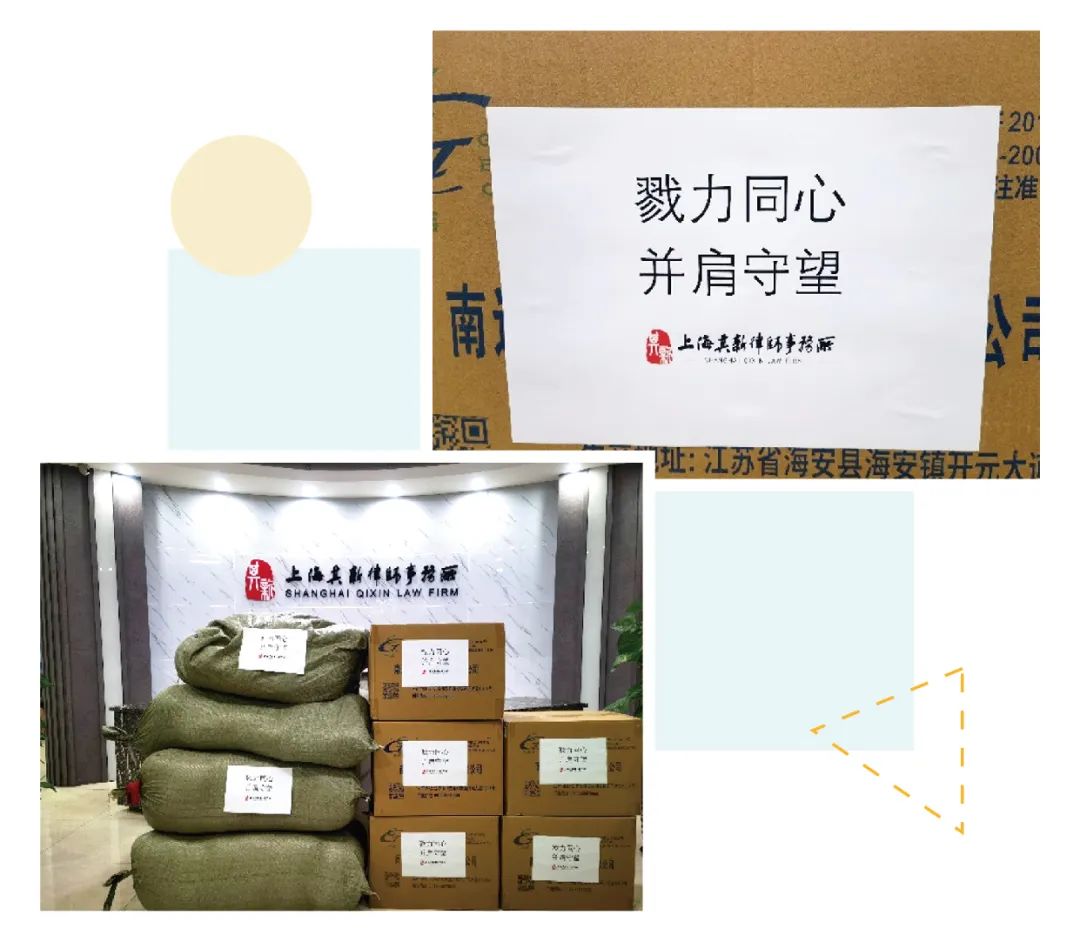 疫情以来,上海其新律师事务所始终关注疫情动态,关心一线防疫工作人员和志愿者,3月28日,该所律师赶在封控前通过多方渠道连夜紧急采购睡袋、医用防护服等防疫物资,将防疫物资在第一时间捐赠给社区一线,在疫情防控的关键时期为防疫一线送上了爱心,并表达“戮力同心,并肩守望”的美好心愿。疫情期间,该所携手柏万青志愿者工作室,共同开展线上法律服务,通过入群服务、电话沟通等方式提供线上法律咨询、帮助矛盾纠纷化解。此外,还积极推动开展法律“云服务”,努力保障疫情期间法律服务“不打烊”,为顾问单位和当事人提供专业化的服务,展现出有情怀、有社会责任担当的律所形象。