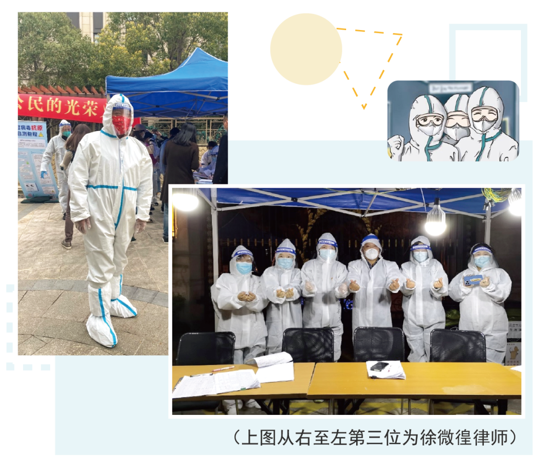 疫情以来,上海胜康律师事务所徐微徨律师一直坚守防疫一线。收到防疫号召后,他立即加入了“2022杨浦新阶层战疫志愿者服务团”,并积极履行人大代表职责,撰写《对于做好疫情防控期间志愿者服务管理等方面工作的紧急建议》,为一线疫情防控提供智力支持。3月26日,作为社区志愿者,他参加了新江湾街道中建居委会居民抗原自测的现场协助工作。28日又继续第二轮疫情防控抗原自测的志愿服务,从白天到黑夜,面对示范操作、分发试剂、维护秩序、查看结果等繁琐的工作,他没有丝毫松懈。除了吃晚饭,志愿期间他没有喝一口水,没有上一次厕所,穿上防护服,热,闷,行动不便,但一天下来竟然走了30000步。“我也是老志愿者了,志愿参与疫情防控,融入社区,将个人、家庭与社区的健康安全时刻放在心上,是本份也是责任。”徐微徨律师说。