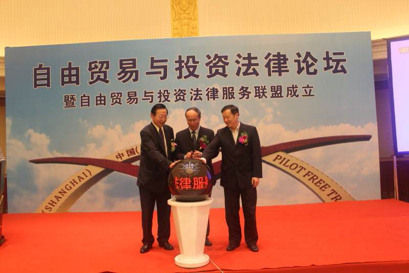 在周禹鹏会长、浦东新区人大唐周绍主任和缪晓宝主任主持的启动仪式下,融孚律师事务所、华贸硅谷律师事务所、华东政法大学国际法学院及中国国际律师培训中心共同签署了《自由贸易与投资法律服务与研究联盟章程》,以此宣告国内第一家以“理论实务联动、中外合作共赢、服务安全高效”为宗旨,以提高法律服务质量,拓展自由贸易与投资服务地域和业务范围,促进“自贸区”律师业务发展和中国律师国际化进程为目标的法律服务联盟的成立。