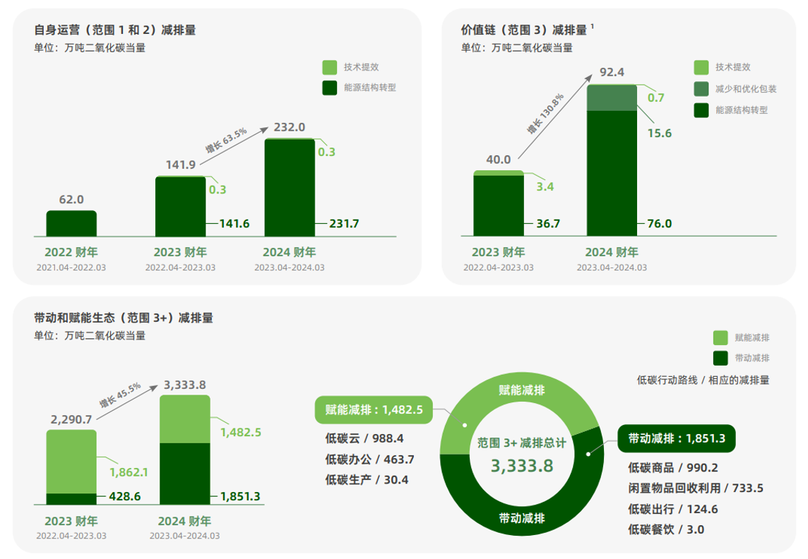 然而,土地利用、生物多样性以及环境污染和环境管理方面并未在报告中有明显体现,这可能也是在华证的ESG评价等级中,阿里的环境评级从去年的BBB级下降到了B级的原因之一。