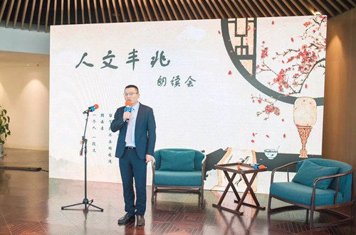 在朗读者正式出场前,由本次活动主办方上海丰兆律师事务所主任潘峰律师作欢迎致辞,为在座嘉宾讲述此次活动创办初衷的同时,也祝愿朗读会能带给在座每一位幸福。