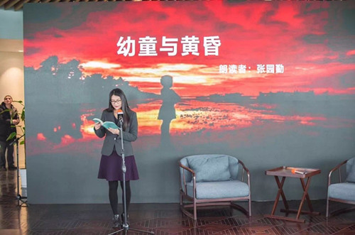 华东政法大学附属松江实验学校校长张园勤为我们朗读了她的自创作品《幼童与黄昏》,让在座每位嘉宾感受了她在眺望远处黄昏时的另一种心境。
