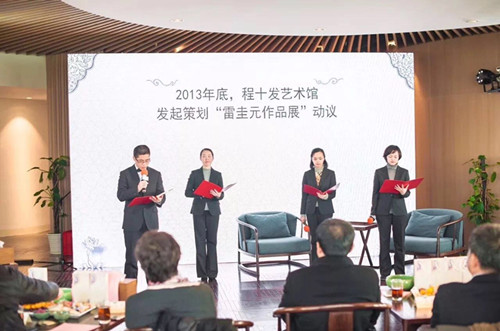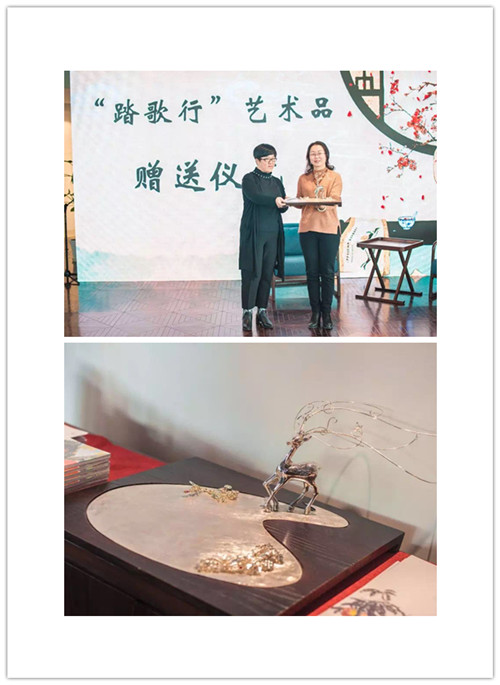 主办方向程十发艺术馆赠送具有茸城寓意的艺术品《踏歌行》,并邀请《踏歌行》设计师讲述了该作品设计的灵感和寓意。此外,程十发艺术馆提供了100余本画册供活动参与者阅览,以表达对本次朗读会的大力支持。