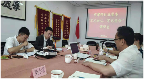 7月24日下午,烈日炎炎,上海市律师行业党委委员、市律协副会长徐培龙一行冒着酷暑赴宝山进行“不忘初心、牢记使命”主题教育调研活动。
