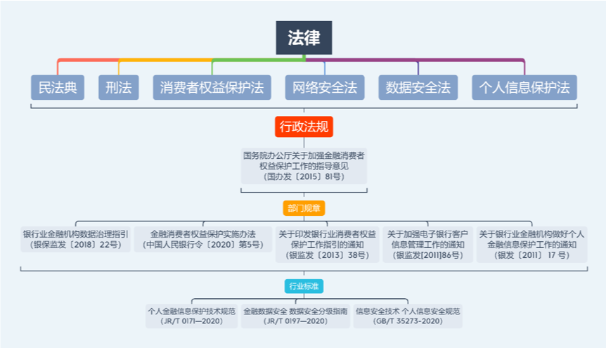 在《个保法》颁布以前,金融领域内关于个人信息保护的规定散落于法律、行政法规和部门规章之中,且多为原则性的规定。行业标准层面,尽管有诸如《个人金融信息保护技术规范》《金融数据安全 数据安全分级指南》等细化的操作指引,但效力层级较低,并非强制适用标准,实际效果可能较为有限。